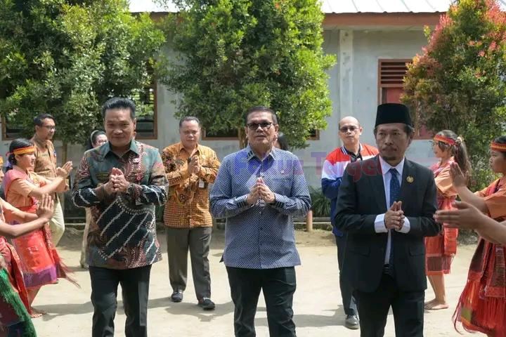 HUMBAHAS – Anggota Komisi X DPR RI, Drs Sabam Sinaga MM bersama Bupati Humbang Hasundutan (Humbahas), Dr Oloan P Nababan SH MH dan Ketua DPRD Humbahas Parulian Simamora menyerahkan secara simbolis bantuan Program Indonesia Pintar (PIP) kepada para siswa penerima manfaat di UPT SMP Negeri 015 Siponjot, Kecamatan Lintongnihuta, Jumat 13 Juni 2025.