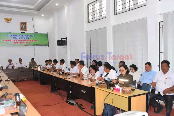 HUMBAHAS – Bupati Humbahas yang diwakili Asisten Perekonomian dan Pembangunan Martogi Purba membuka acara Konsultasi Publik II Pembuatan dan Pelaksanaan Kajian Lingkungan Hidup Strategis (KLHS) Rencana Pembangunan Jangka Menengah Daerah (RPJMD) Kabupaten Humbang Hasundutan Tahun 2025-2029 di Ruang Rapat Sekretariat, Kantor Bupati Humbahas, Rabu 28 Mei 2025.