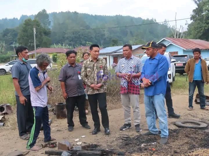 HUMBAHAS – Bupati Humbang Hasundutan, Dr. Oloan Paniaran Nababan, SH, MH meninjau korban bencana kebakaran rumah di Desa Siponjot, Kecamatan Lintongnihuta dan selanjutnya menyerahkan bantuan kepada korban, Jumat 4 Juli 2025.