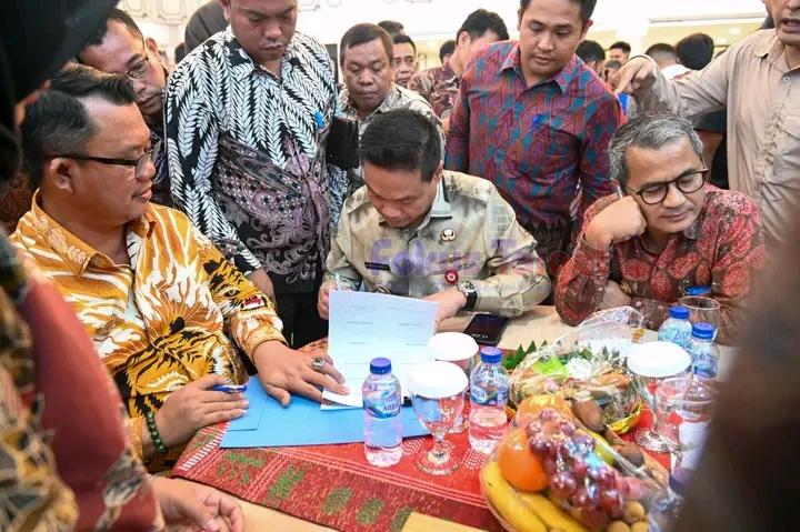MEDAN – Bupati Humbang Hasundutan Dr. Oloan P. Nababan, SH, MH bersama Badan Gizi Nasional menandatangani Nota Kesepahaman tentang Sinergi dan Kerjasama dalam Kegiatan Program Makan Bergizi Gratis (MBG) di Aula Raja Inal Siregar Kantor Gubernur Sumatera Utara, Kamis 19 Juni 2025. Penandatanganan ini dilaksanakan sekaligus bersama seluruh Kepala Daerah se-Sumatera Utara.