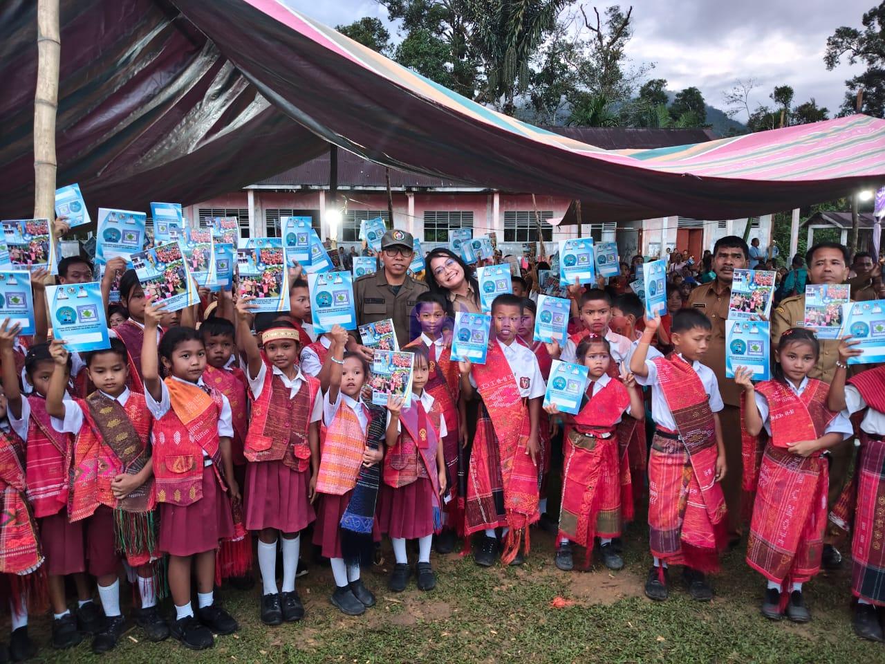 Kepala sekolah SMPN 4 Donni Siagian, dalam sambutannya menyampaikan rasa haru atas kehadiran Bupati yang rela menempuh medan berat menuju lokasi tersebut.