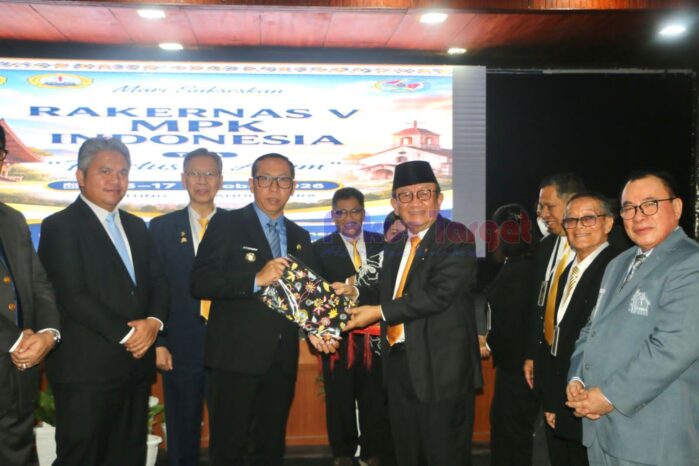 TAPUT – Bupati Tapanuli Utara, Dr. Jonius Taripar Parsaoran (JTP) Hutabarat, S.Si., M.Si., menghadiri sekaligus memberikan sambutan pada acara Pengukuhan Panitia Rapat Kerja Nasional (Rakernas) V Majelis Pendidikan Kristen (MPK) di Indonesia. Kegiatan yang berlangsung khidmat di Gedung Sopo Partungkoan, Tarutung, Sabtu (28/3/2026) ini menandai dimulainya persiapan Tapanuli Utara sebagai tuan rumah agenda nasional tersebut pada Oktober mendatang.