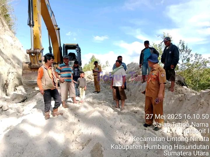 HUMBAHAS – Dukung ketahanan dan swasembada pangan, Pemerintah Kabupaten Humbahas melalui BPBD (Badan Penanggulangan Bencana Daerah) bekerjasama dengan Desa Hutasoit I Kecamatan Lintongnihuta dalam penanganan JUT (Jalan Usaha Tani).