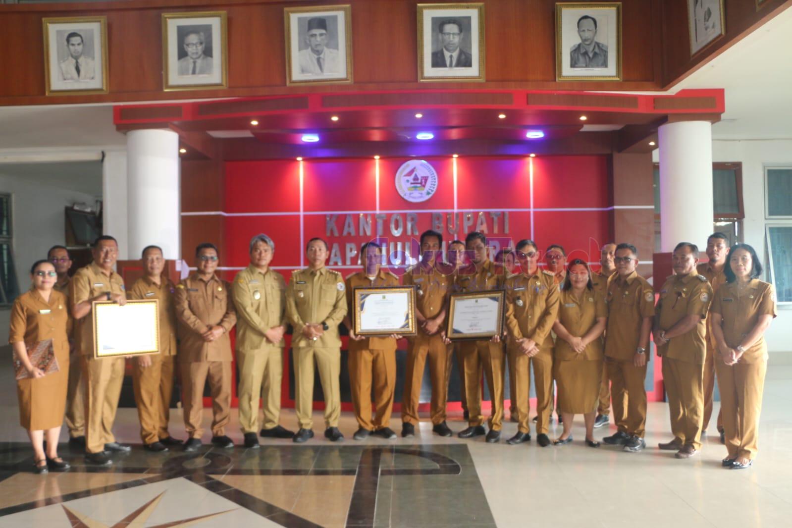 TAPUT – Bupati Tapanuli Utara Dr. Jonius Taripar Parsaoran Hutabarat, S. Si., M. Si didampingi Wakil Bupati Dr. Deni Lumbantoruan, M. Eng menerima laporan resmi dari Asisten Perekonomian dan Pembangunan David Sipahutar didampingi Kepala Bagian Hukum Setdakab Tapanuli Utara terkait penerimaan tiga penghargaan di bidang reformasi hukum dan layanan hukum daerah. Penyampaian laporan tersebut dilaksanakan di Kantor Bupati Tapanuli Utara, Senin (23/02/2026). Kegiatan ini merupakan bentuk pertanggungjawaban sekaligus apresiasi atas dukungan dan arahan pimpinan daerah dalam penguatan tata kelola hukum.