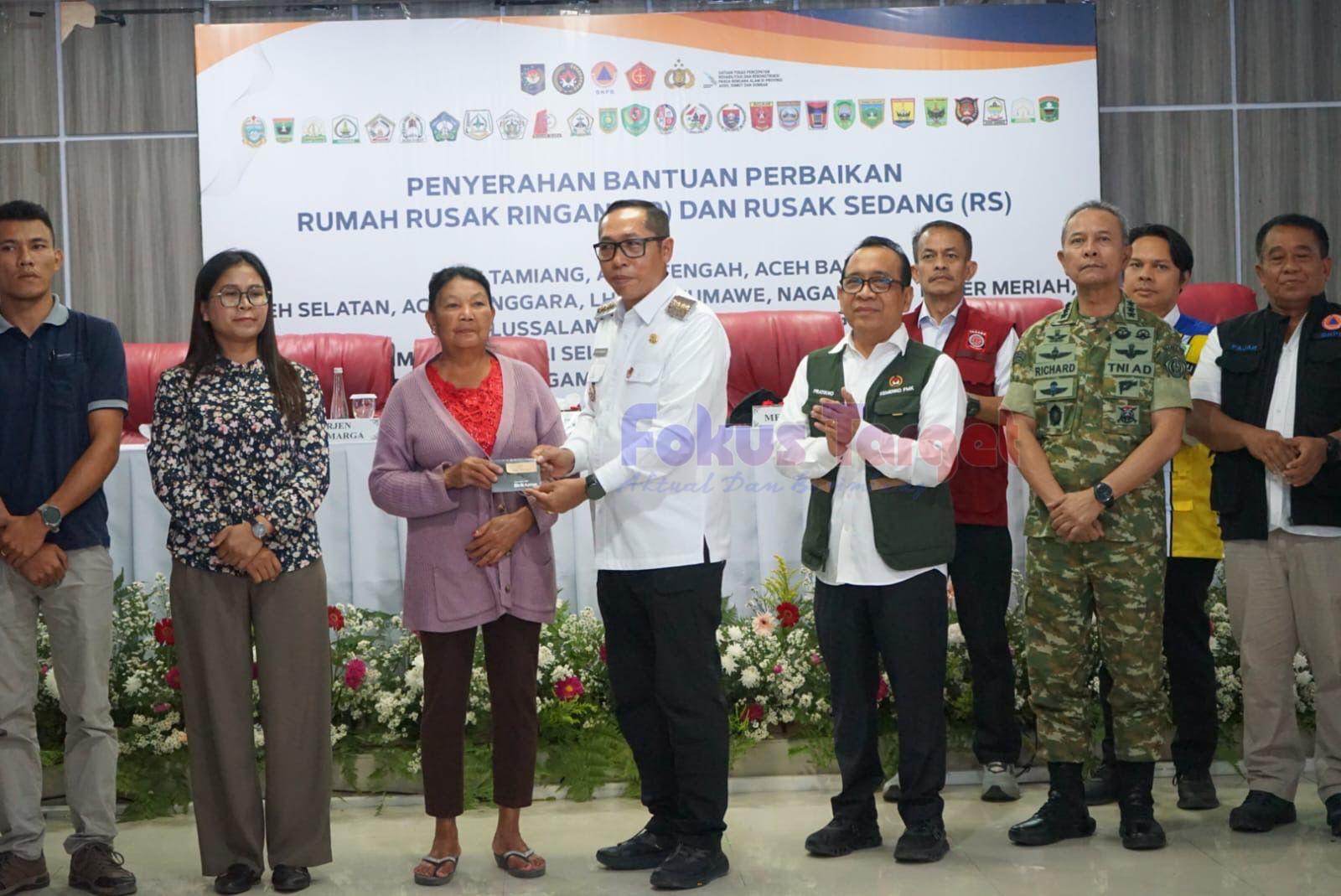 Pada kesempatan tersebut, pemerintah menyerahkan bantuan stimulan rumah rusak ringan dan sedang kepada 17.272 kepala keluarga yang tersebar di 24 kabupaten/kota di Provinsi Aceh, Sumatera Utara, dan Sumatera Barat. Dari Kabupaten Tapanuli Utara, sebanyak 86 penerima bantuan hadir secara langsung sebagai perwakilan masyarakat terdampak.
