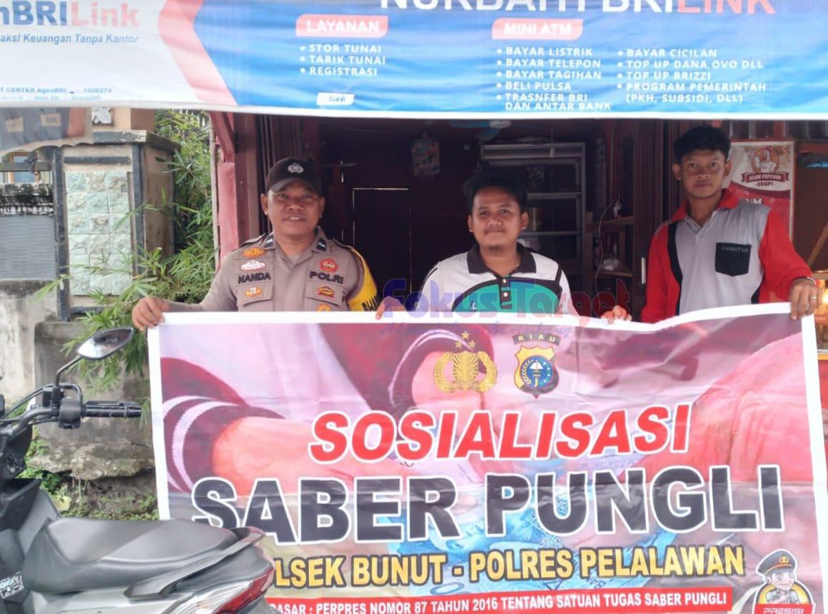 Pada Minggu (11/5/2025), sekira pukul 11.00 WIB, Ps. Ka SPK II Polsek Bunut Aipda Sahata Gultom bersama personel lainnya melaksanakan sosialisasi Saber Pungli di beberapa titik strategis, seperti Indomaret dan Alfamart yang berada di Jalan Lintas Bono, Kelurahan Bunut, Kecamatan Bunut.