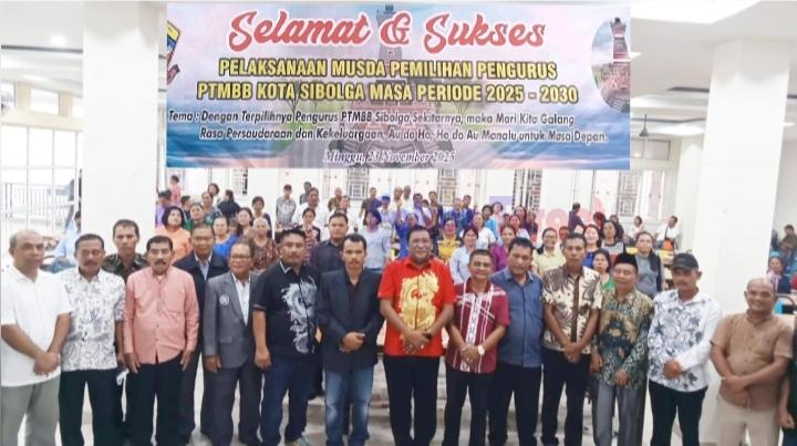 SIBOLGA – foktanews.online ||Setelah Musyawarah Daerah (Musda) PTMBB Sibolga yang digelar di Kafe 88 Sibolga. Minggu 23/11/2025. Musda ini yang di ikuti oleh 120 peserta dengan hak suara dan anggota PTMBB Sibolga sekitarnya.